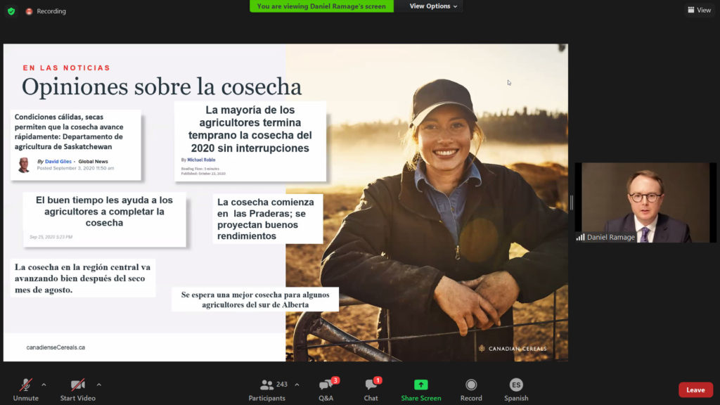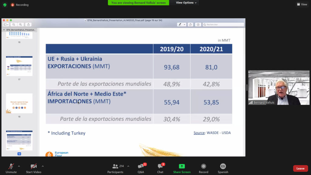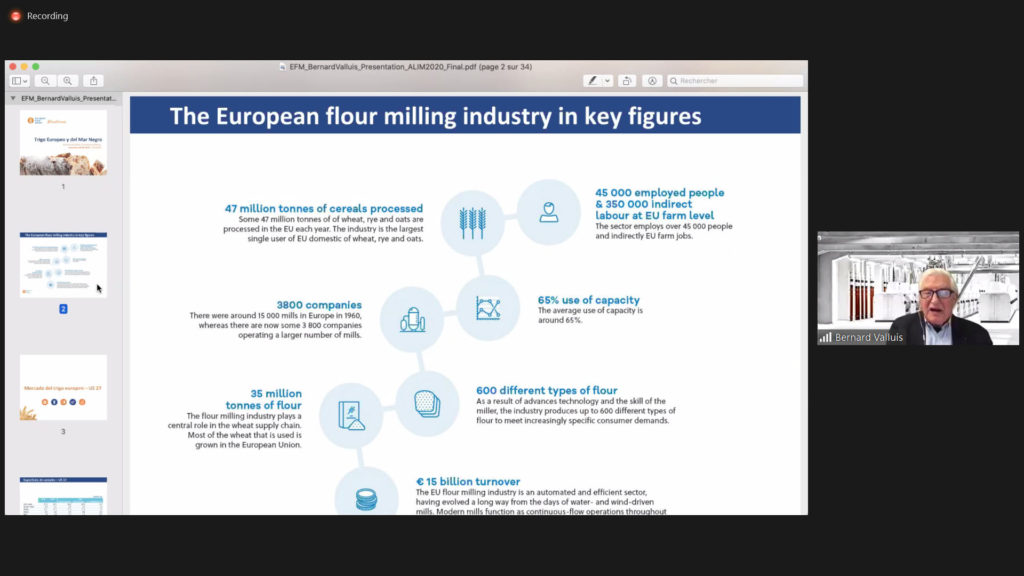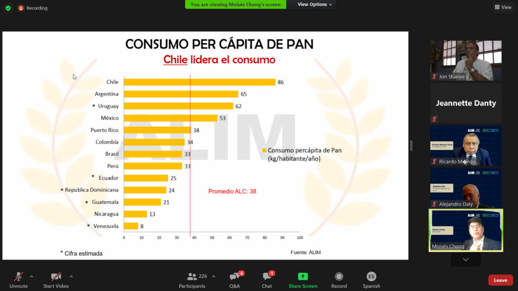 Se inauguró el encuentro con las palabras de bienvenida del Presidente de la Sociedad Nacional de Industrias de Perú (SNI) Sr. Ricardo Márquez Flores y con la presentación de la situación de la industria molinera Latinoamericana en el año 2020, por el Sr. Moisés Chong del Comité de Molinos de Trigo de Perú. Luego se hicieron las presentaciones sobre el mercado mundial del trigo con la presentación de expertos de Estados Unidos (Sr. Vince Peterson, Presidente U.S. Wheat Associates); Canadá (Sr. Daniel Ramage, Director de Análisis de Mercado y Política de Cereals Canadá); Argentina (Sr. Diego Cifarelli, Presidente Federación Argentina de la Industria Molinera de Trigo (FAIM); Europa y Mar Negro (Sr. Bernard Valluis, Presidente Honorario de los Molineros Europeos). A continuación, se desarrolló el panel de representantes de los países de ALIM sobre la situación actual de cada país asociado y por Chile presentó el Sr. Pablo Avendaño, Vicepresidente de nuestra Asociación y representante ante ALIM hasta el año 2020. Finalmente, se respondieron consultas y se realizó el cierre por el Presidente Ejecutivo de ALIM, Alejandro Daly.
