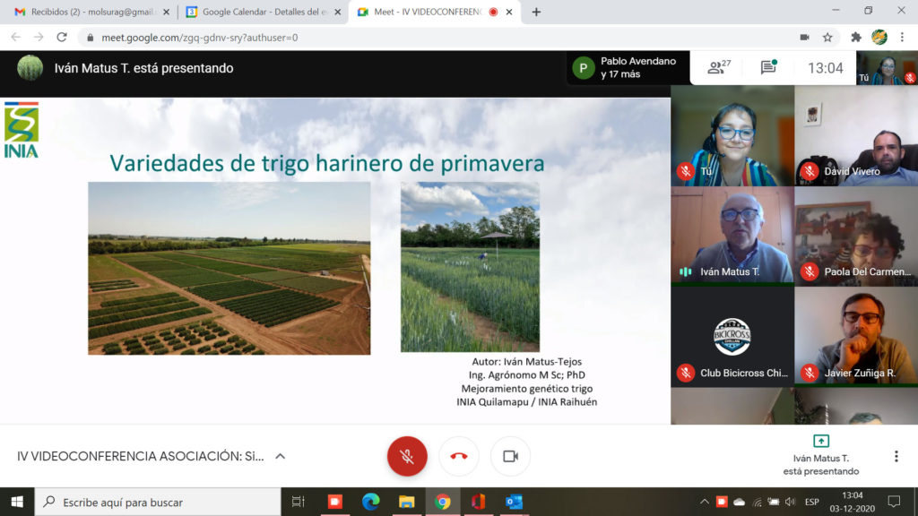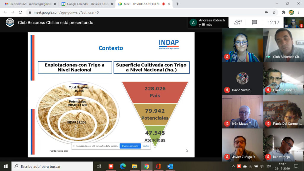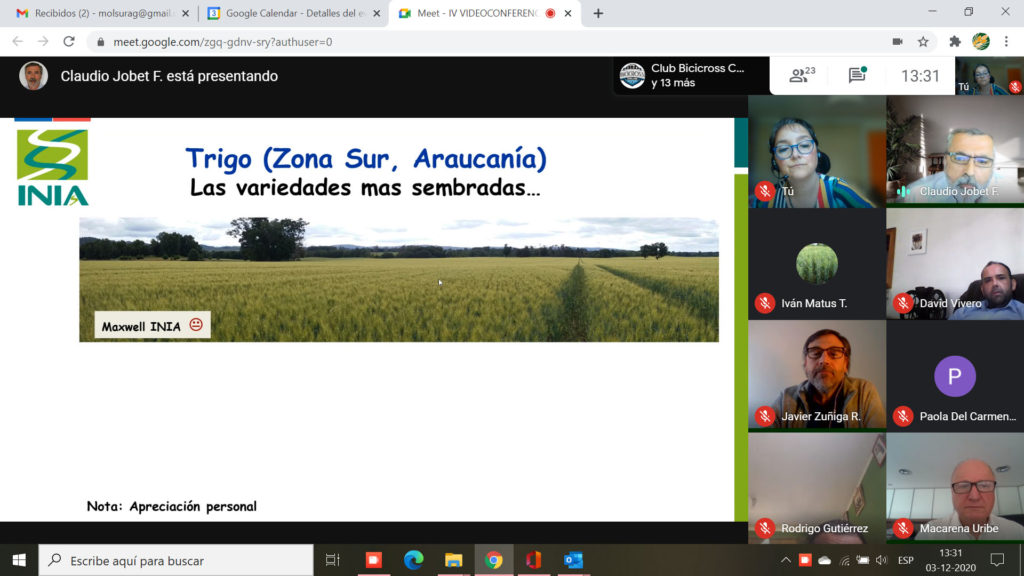 Las nuevas tendencias y la escasez hídrica fueron parte de los desafíos planteados por expertos nacionales para el desarrollo de las variedades de trigo en Chile. La jornada se inició con la presentación del Instituto de Desarrollo Agropecuario (INDAP) a cargo de Alfredo Mariño (Sectorialista de Cereales) y Rodrigo Pavez (Encargado de Alianzas Productivas), quienes entregaron los principales instrumentos que dispone dicho organismo para el fortalecimiento de la comercialización del trigo entre pequeños productores nacionales y la agroindustria molinera. La agenda continuó con la presentación de la experta de la Universidad de Chile, Paola Silva, quien presentó como se afecta el rendimiento cuando el agua es limitante y las alternativas para enfrentar esta situación. Posteriormente, Iván Matus experto de INIA Quilamapu/Raihuén entregó elementos de la situación actual de los trigos primaverales en el país, luego fue la presentación de Claudio Jobet, experto de INIA Carillanca sobre la situación actual de los trigos de invierno y finalmente Javier Zúñiga presentó importantes tendencias que afectan la demanda de diferentes tipos y calidades de trigo en el mundo y en Chile.